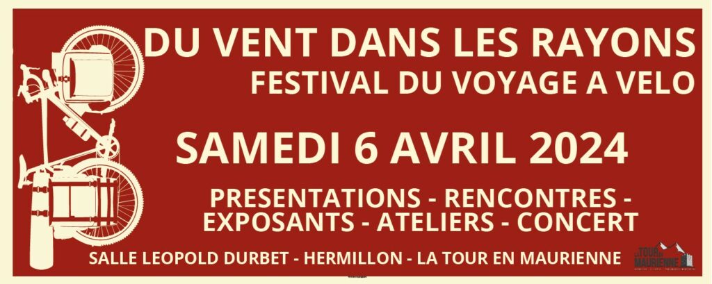 Une aventure unique au cœur du voyage à vélo, qu’il vous mène au bout du monde ou simplement au bout de votre rue. Le festival « Du Vent dans les Rayons » a débarqué à Hermillon, La Tour en Maurienne le 6 avril 2024 !