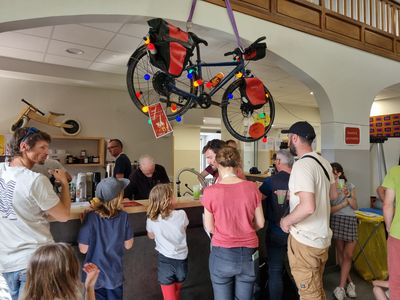 Avec 6 ateliers interactifs : Comment préparer son itinéraire, bricoler en voyage, faire son carnet de voyage, s’initier au monocycle, faire du yoga spécial cycliste ou préparer son premier voyage. Des ateliers animés par des voyageurs et des échanges avec cyclistes chevronnés ou néophytes complets.