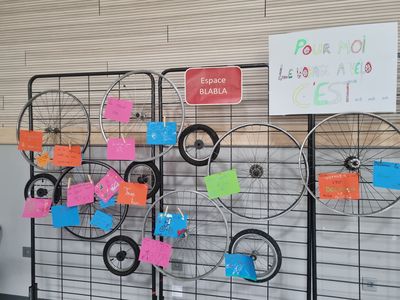 Espace blabla, tests de matériels, espace librairie, espace monde, jeux concours, atelier de fabrication de badge, lecture pour enfants, buvette (bio et locale), food truck…